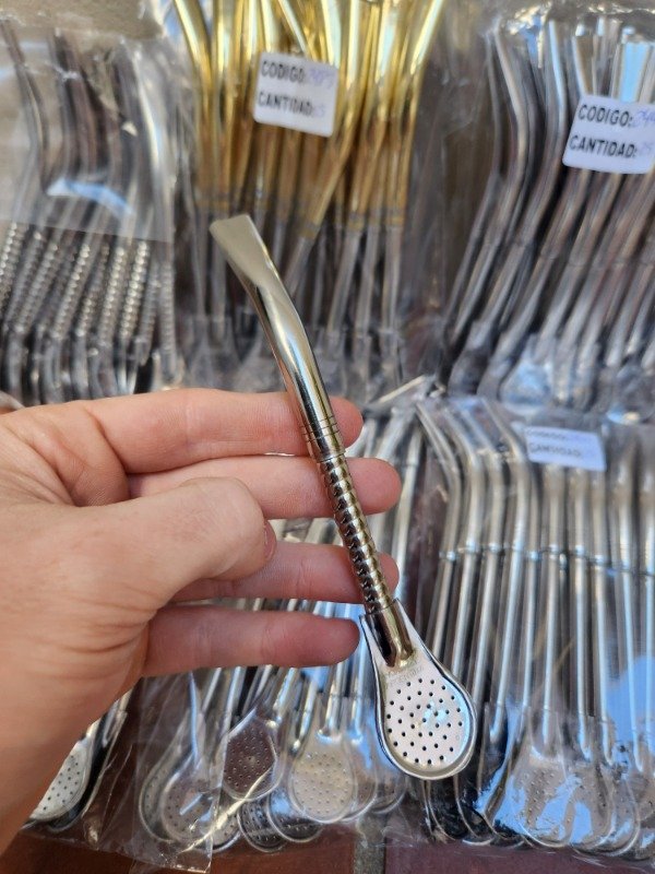 Bombilla de acero inoxidable cincelada tipo "pico de loro".