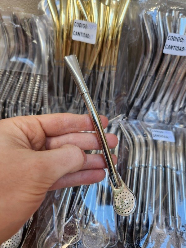 Bombilla de acero inoxidable tipo "pico de rey".