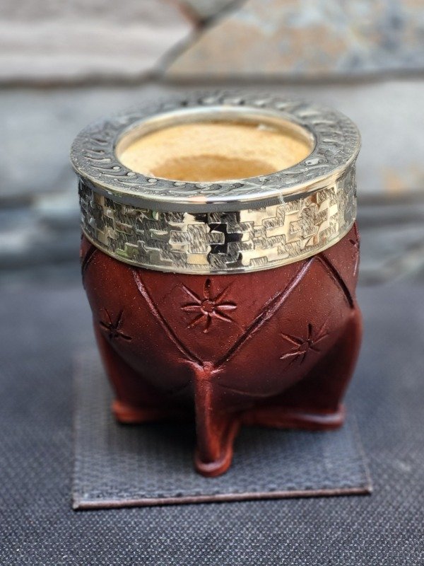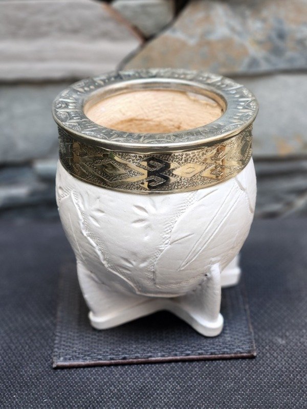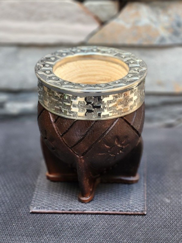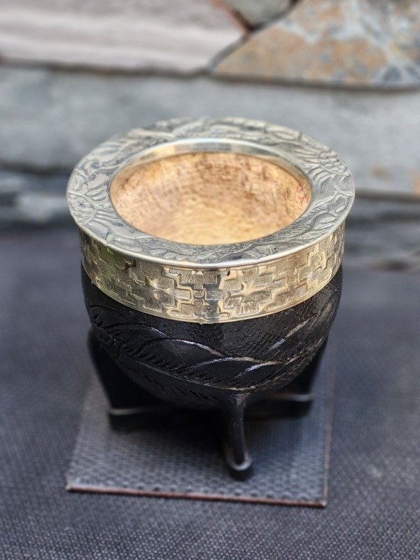 Un mate con una bellísima estética y trabajado en cada detalle de su elaboración. Su pared gruesa y reforzada, junto a el cuero que rodea las paredes de la calabaza con su diseño artístico, le otorgan a este mate una esencia elegante y armoniosa.