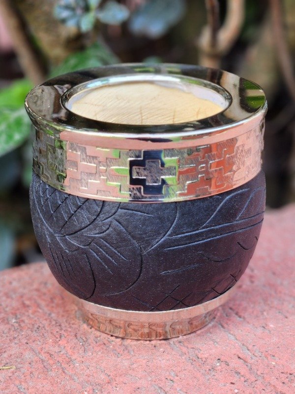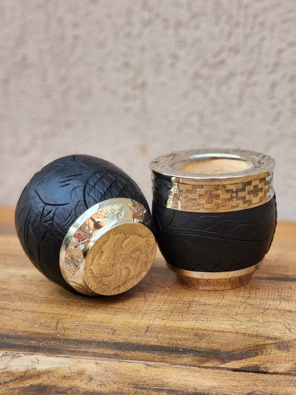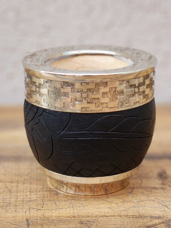 Su virola de alpaca lisa, junto a los grabados únicos en el cuero, hacen de este mate una pieza elegante y robusta, ideal para quienes buscan combinar tradición, estilo y durabilidad en cada cebada.