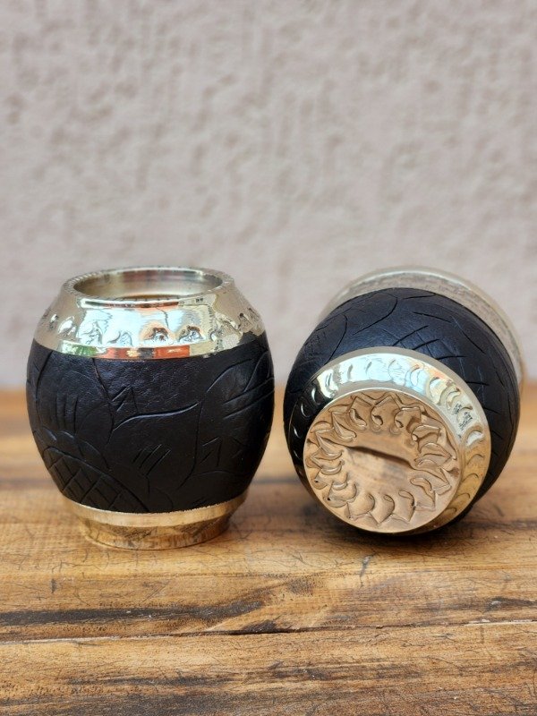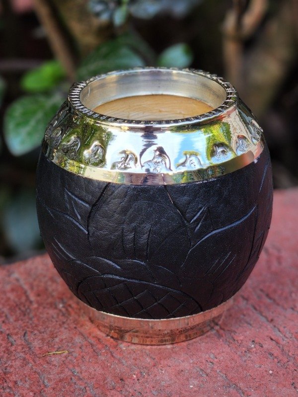 El Torpedo Roma combina elegancia y tradición artesanal en un diseño que se adapta perfectamente a la mano. Forrado en cuero labrado a mano y con detalles de alpaca artesanal, este mate se destaca por su estética refinada y su excelente terminación.
