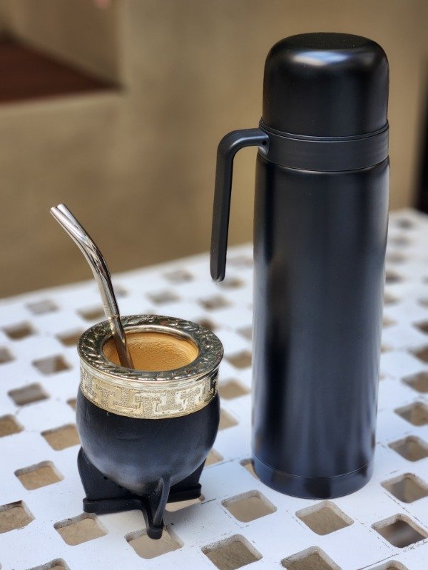Para quienes buscan un toque de arte en cada cebada, presentamos nuestro Set Mate Imperial con Virola Cincelada. Cada detalle tallado a mano en la virola convierte a este mate en una verdadera obra de arte. Este set exclusivo viene con un termo de 1 litro media manija, disponible en plateado o negro, para que tu agua siempre esté lista. Además, incluye una bombilla de acero a elección, asegurando la mejor experiencia. Dejáte llevar por la tradición y la artesanía, disfrutando de la calidad superior de este set matero.